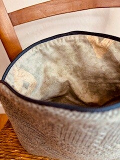 Grande trousse faite main à partir d’un pull gris bleu de seconde main, soigneusement recyclé dans une démarche écoresponsable. Son tissu doux et épais lui apporte un style chaleureux et original.