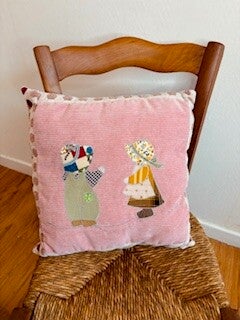 Coussin 40x40 cm en tissu recyclé – Appliqué artisanal & motif graphique rose