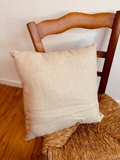 Coussin 40x40 cm en tissu recyclé – Appliqué artisanal & verso laine beige
