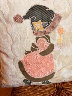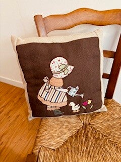 Le recto est orné d’un appliqué textile artisanal, réalisé avec des matières recyclées pour un rendu unique. Le verso, en laine douce beige, offre une texture chaleureuse et agréable au toucher, parfaite pour un moment cocooning.