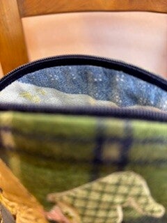 Cette trousse est née d'ancien pull en laine ou d’une chemise d’autrefois, longtemps oubliés, à qui l’on a offert une seconde vie. Chaque matière porte en elle la trace du temps, la douceur des souvenirs et la chaleur du vécu.
