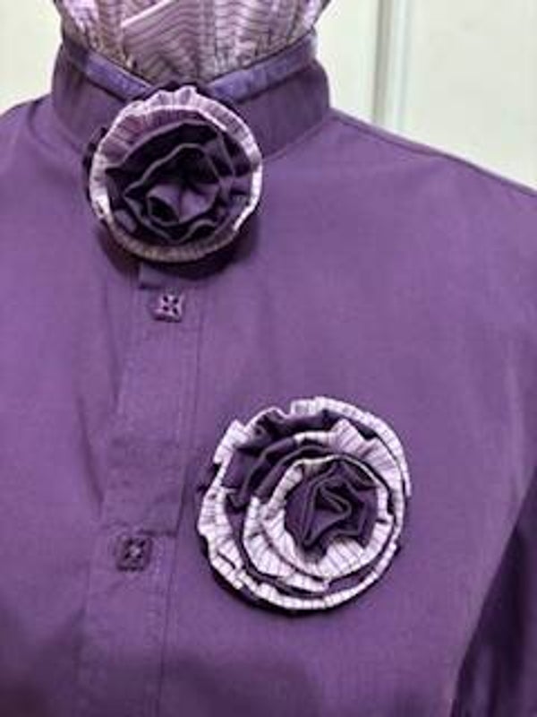 Fleurs décoratives faites main sur le col et la poitrine vendu séparément.